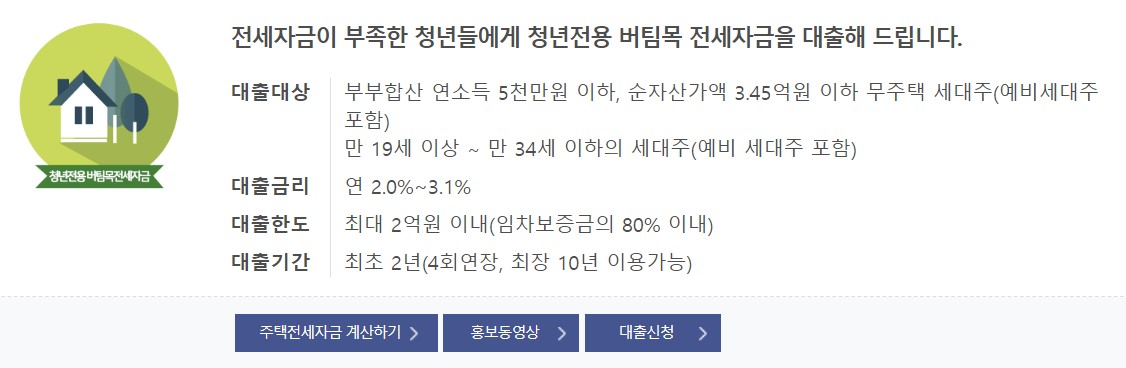 주택도시기금 청년 전용 버팀목 전세자금 자세히 알아보러 가기